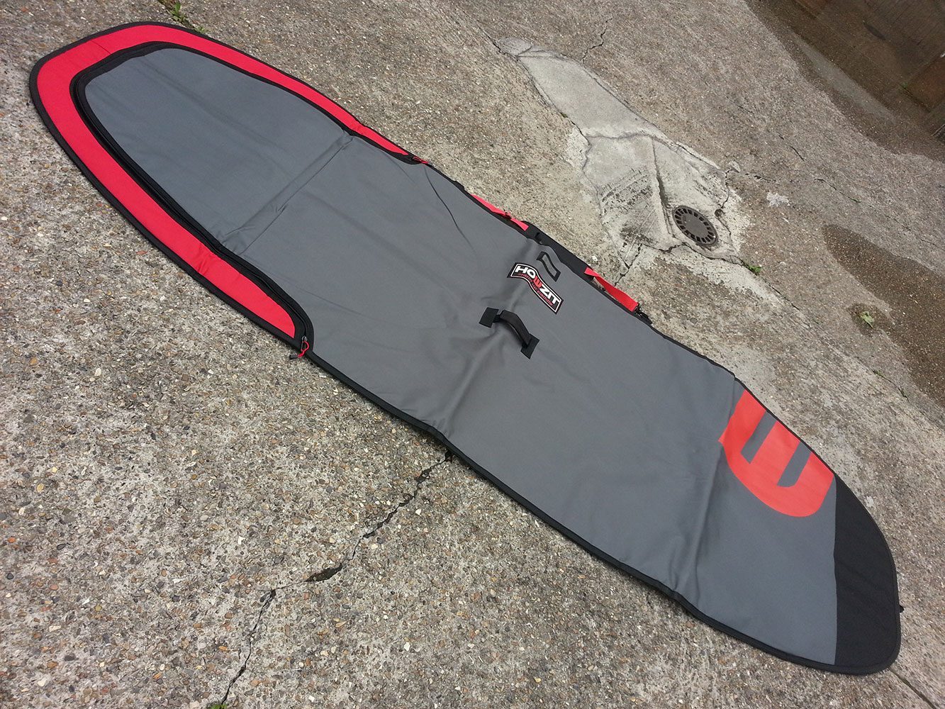 Les housses Howzit sont fabriquées en tissu 600D qui leur permet de résister aux différentes usures, avec une mousse PE de 5mm d’épaisseur sur l’ensemble de la housse. Au niveau de la fermeture, c’est un ZIP YKK ultra costaud et une face réfléchissante assure une sécurité contre le soleil pour votre planche. A l’intérieur, on retrouve une poche à wax, ou à dérives ou à leash. Elle est facile à transporter avec une sangle de transport et une poignée latérale et une poignée centrale qui facilite la prise en main. Petit plus, une fente pour dérive centrale qui se ferme avec scratch. C’est un excellant rapport qualité prix, disponible en différentes couleurs (gris, gris/rose, gris/rouge, bleu/rouge) et différentes tailles :