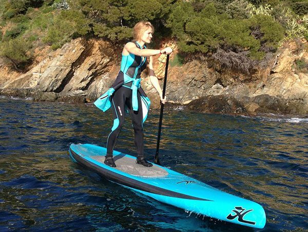 C’est lors du Salon Nautique Paris 2013 que nous avons eu la chance de voir tous les nouveaux produits de la marque Howzit, surtout la gamme féminine. En effet, ils ont réalisé pour 2014 toute une gamme de néoprènes spécialement étudiés pour les filles et les femmes qui pratiquent le stand up paddle et qui veulent rester belles et se mettre en valeur. On a ainsi vu, un top néoprène, la Women Vest en manche longue ou courte ultra stretch, disponible en bleu, vert, rose, ou noir avec un zip devant.On remarquera aussi l’attention qui a été faite sur le mélange du néoprène (devant et derrière) et du lycra (sur les côtés) qui offre un très bon confort de mouvement. Autant vous dire qu’un beau corps de femme avec la fermeture légèrement ouverte, “ça le fait” comme on dit. En voici la preuve avec la rideuse de race, Céline Guesdon.