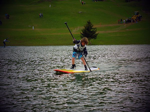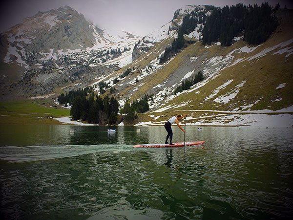 La course de stand up paddle était programmée le 1er jour de défi foly, après les qualifs. Les nombreux spectateurs présents autour du lac ont pu découvrir l’Alpine Lakes Tour et même, pour certains, le stand up paddle, sport encore méconnu au coeur des montagnes ! Tous les concurrents ont d’abord effectué un premier run de qualification sur une distance de 2000m. Sur les 5 runs suivants les concurrents se sont affrontés en duel sur une distance de 500m. C’était une première et visiblement le format a plu, même si les concurrents étaient épuisés à l’issue de l’épreuve ! 4500m en sprint, avec des temps de repos réduits : une sacré mise en route pour ce début de saison !