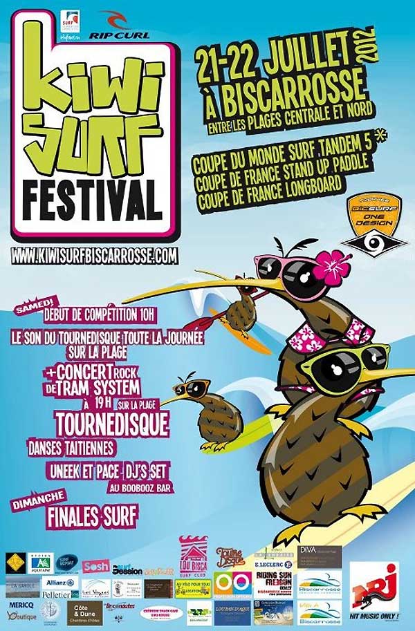 Le Kiwi Surf Festival 2012 se déroule comme tous les ans à Biscarosse et regroupe une compétition nationale et internationale de grande envergure.