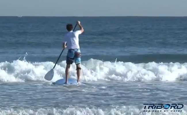 Lorsque vous arrivez sur une vague, fléchissez afin d’amortir le mouvement de la planche et appuyez la rame sur la vague, cela va vous stabilisé mais ne le faite pas trop fort quand même.