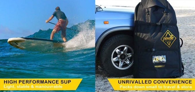 Voilà un concept Pendle Board très intéressant qui combine les avantages d’une planche gonflable et d’une planche rigide. Le principe est simple, prenez l’arrière d’une planche en époxy, idéale pour le sup surf et prenez le côté pratique de la planche gonflable pour le reste de la surface et vous avez une Pendle Board. Après plus d’un an de conception, prototypage, essais de matériaux et de développement de produits, la Pendle Board est prête pour le marché mondial. Le côté rigide à l’arrière est là pour y mettre différents ailerons, apporter de la radicalité et de la maniabilité dans les vagues. Et le côté gonflable permet de la stocker facilement sans compter le transport de celle-ci qui se fait dans un sac avec la pagaie et le gonfleur. Planche disponible en deux tailles 8″6′ et 9″6′ pour un prix de 1 699 et 1 739 dollars. On a hâte d’essayer, et vous?