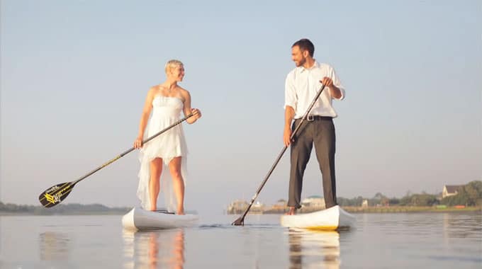 Voilà la vidéo qui fait le tour de la planète, en ce moment dans le monde du stand up paddle, le mariage d’April et de Corey et leurs planches. Quoi de plus agréable, original et drôle que de faire son shooting de photos souvenir en paddle quand on est passionné ! Bravo à la photographe Dana Laymon et The Good Life Film Co, d’avoir immortalisé ces deux rameurs américains en Caroline du Nord. Cela donne envie, vous ne trouvez pas ?