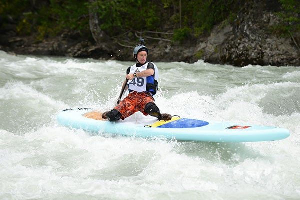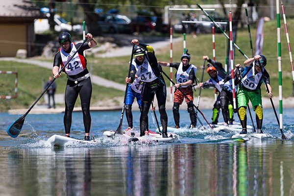 La compétition a commencé le vendredi avec la course courte, une course en deux étapes. Les SUPers ont d’abord effectué deux tours sur le lac adjacent au stade d’eau vive de l’Argentière-la-Bessée avant de rejoindre la terre ferme planche sous le bras pour courir jusqu’à la Durance et effectuer une descente jusqu’au pont de fer de La Roche-de-Rame, soit 4,2 km mixant flat race et river race. À ce petit jeu, c’est Harald Marzolf qui l’emporte devant Benjamin Vaurs, pour une petite seconde, et Nicolas Fayol finit 3ème à 10 secondes. Le samedi la course longue allait être le juge de paix de l’évènement, avec un parcours ambitieux de 10 km sur la Durance alternant passages techniques et zones plus plates. Le départ fut donné 300 mètre en amont du légendaire spot du Rabioux. L’arrivée, s’est faite sur le village de l’évènement. Là encore la tête du peloton a bataillé ferme et a vu la victoire de Yann Morais devant Harald Marzolf et Nicolas Fayol. Sur l’addition des 2 manches c’est donc Harald qui remporte le gros lot (une planche Starboard), devant Yann Morais qui repart avec une combi étanche Sandiline, et Nicolas Fayol qui est, du coup, équipé de sous couches techniques Sandiline.