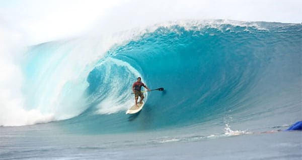 On a de plus en plus l'habitude de voir des stand up paddle sur eau calme ou dans les petites vagues, mais voici ce que ça donne dans les grosses vagues.