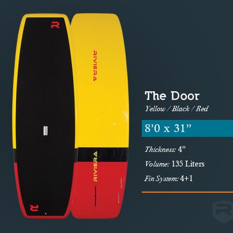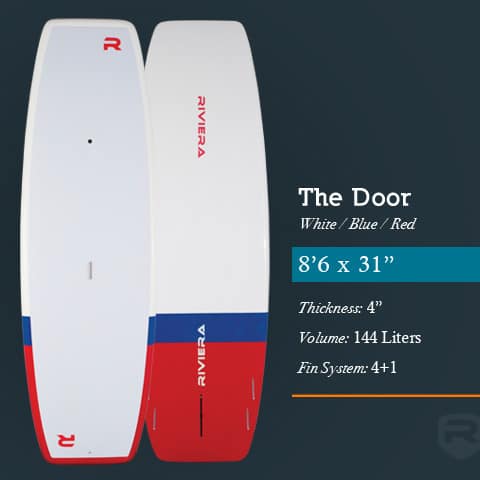 Comme vous pouvez le voir dans la vidéo, la Riviera Door est une petite planche de sup surf disponible en 7′, 7’6″, 8′ et 8’6″, qui se surf presque comme une finless. Petite et légère, grâce à sa forme style wakeboard, elle procure une performance hors norme pour celui qui sais la maitriser. Au niveau des volumes il faut vous préparer à avoir du light de 118 à 144 litres. Et au niveau de la vidéo, on retrouve Ryan Helm et Brandon Rambo sur la Riviera Tigre et la Riviera Door.