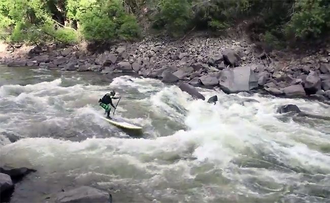Superbe session de stand up paddle de rivière avec Fletcher Burton sur la South Silver Creek en Californie. Une chose est sure, il faut en avoir dans le pantalon pour décentre debout sur un sup ces cascades d’eau. Pour ceux qui ne connaissent pas Fletcher Burton, il a été 7 fois champion américain en waveski, 2 fois en Kayak Surf et bien plus encore, autant vous dire qu’il aime l’adrénaline.