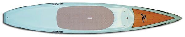 Commençons par la 12’6 Elite BCX +C qui est aussi disponible en 14′. Ce sup combine la technologie bamboo composite et l’époxy comme la plupart des nouvelles planches de race. Le bamboo est un des matériaux ultra flexible et résistant que l’on trouve dans la nature et qui désormais se retrouve sur les boards de paddle. Hobie a intégré une stratification en bamboo avec sa fabrication sandwich EPX-1 pour produire une nouvelle gamme de planches plus légères, fiables et de haute performance.